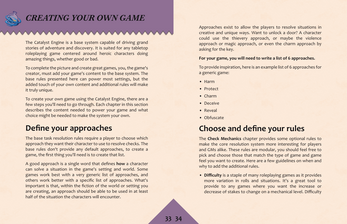 To make the engine your own, you'll need to define a set of base approaches, powers for the characters to wield, and lifepaths to contain them. The engine will power the base dice mechanics, you can focus on the flavour and advanced rules. The book provide many tips and examples to help you get started.
